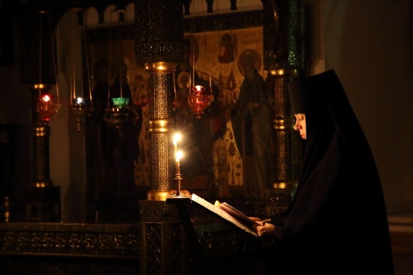 Богослужение началось с полунощницы – службы, совершаемой в монастырях ежедневно в полночь или рано утром. По церковному Уставу чтение полунощницы предваряется 12-ю ударами колокола, что было особенно символично в эту ночь, так как прозвучали они ровно в 12 часов.
