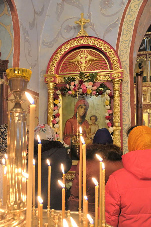 Накануне праздника перед всенощным бдением был отслужен молебен с водосвятием и акафистом «Скоропослушнице».