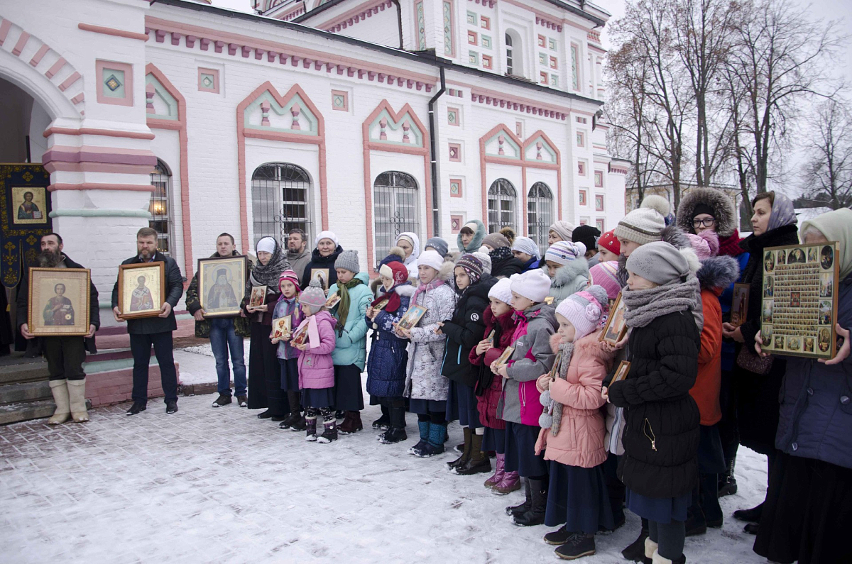 За богослужением молились настоятельница Свято-Троицкого Александро-Невского ставропигиального женского монастыря в с. Акатове игумения Антония (Минина) с сестрами, настоятельница Никольского Шостьенского ставропигиального женского монастыря игумения Неонилла (Фролова), учителя и воспитанницы Александровской гимназии при монастыре.