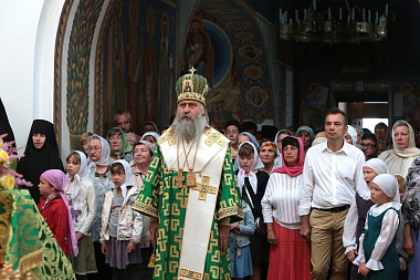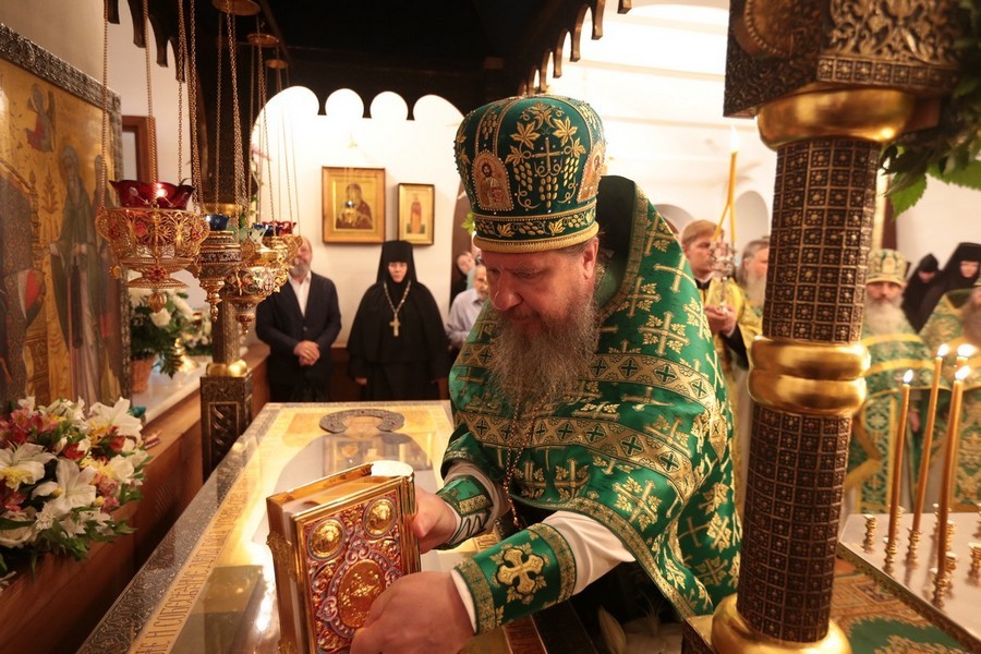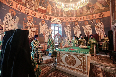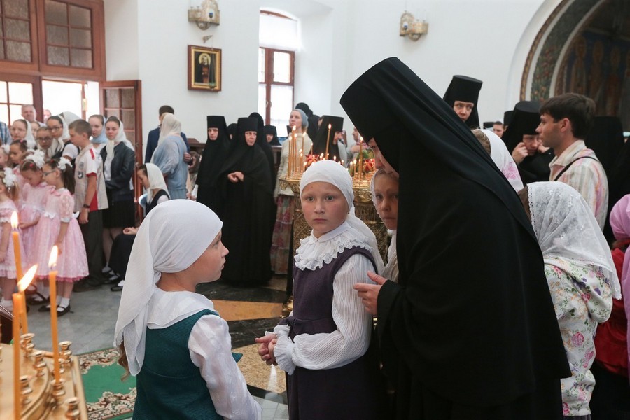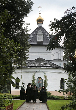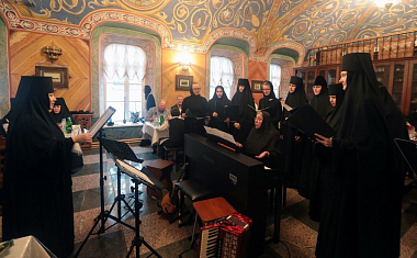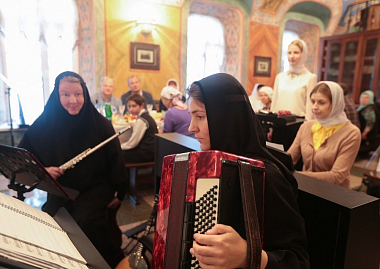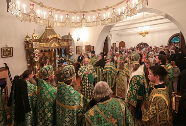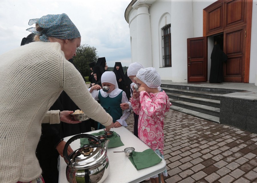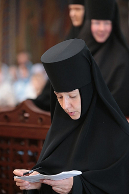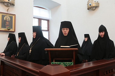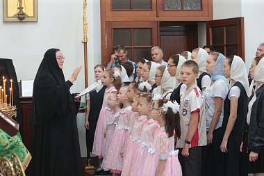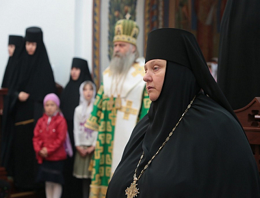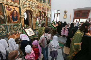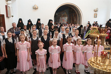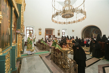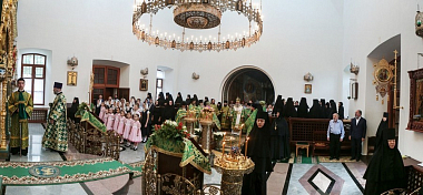 Завершил позднюю Литургию крестный ход, направившийся из Троицкого собора в храм прп. Стефана Махрищского, где был совершен торжественный молебен у святых мощей преподобного. За праздничной трапезой для гостей монастыря прозвучало музыкальное поздравление, которое подготовили сестры обители и воспитанницы детского приюта «Ковчег».
