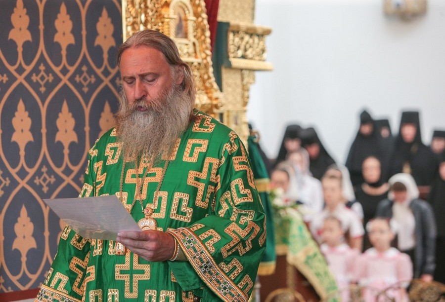 Прежде всего, я должен передать благословение Святейшего Патриарха Московского и всея Руси Кирилла матушке игумении, сестрам, паломникам, всем тем, кто пришел помолиться у цельбоносных мощей преподобного и богоносного отца нашего Стефана, Махрищского чудотворца.