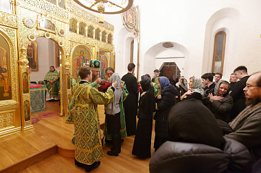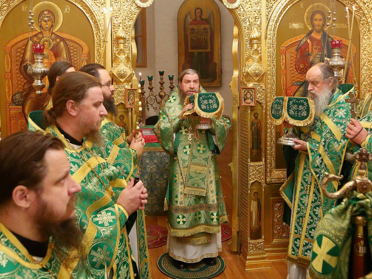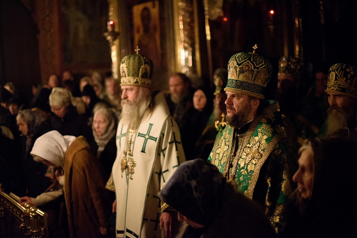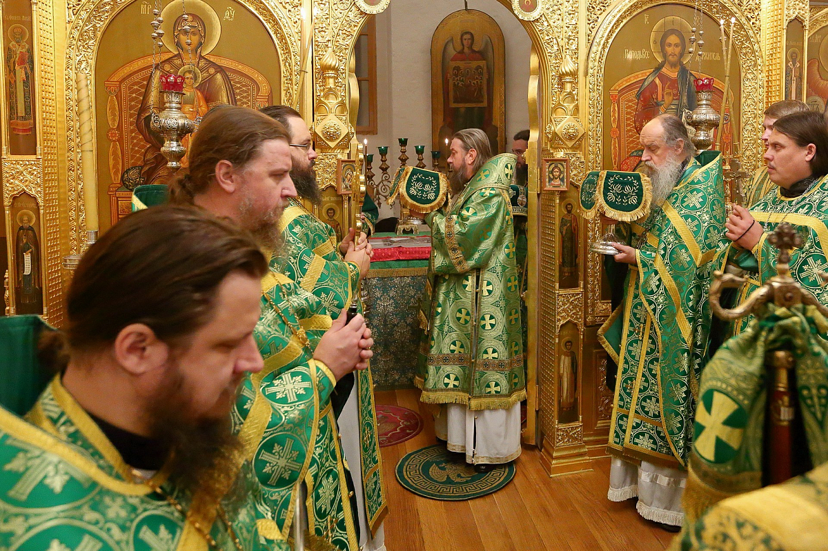 Его Высокопреосвященству сослужили епископ Уржумский и Омутнинский Фома, братия лавры в священном сане.