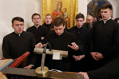 Богослужебные песнопения исполнил хор студентов Московской духовной академии.