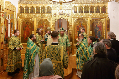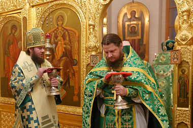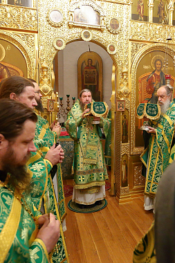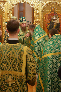 Раннюю Литургию в Никоновском приделе Троицкого собора возглавил митрополит Астраханский и Камызякский Никон, отмечавший сегодня день своего тезоименитства.