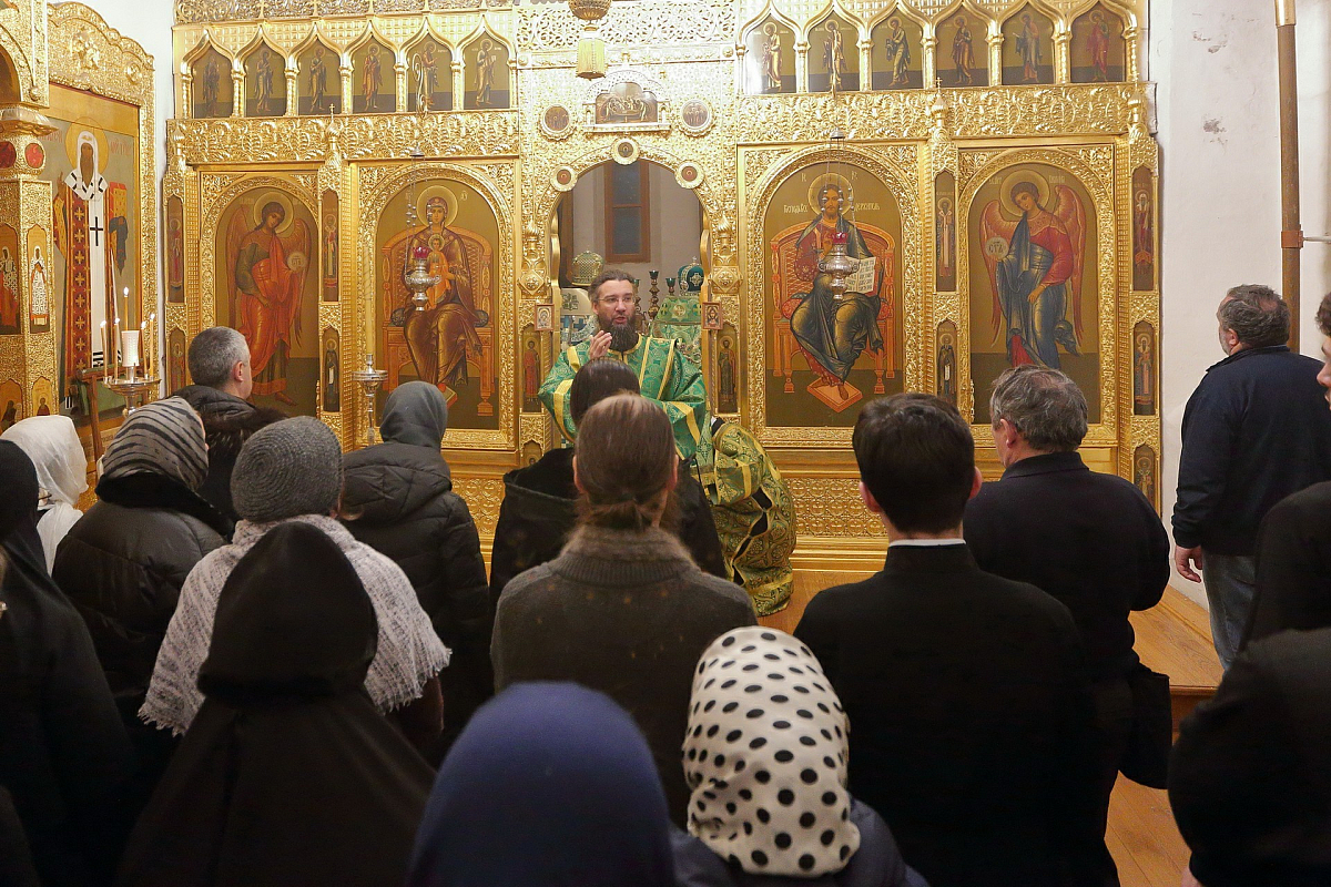 Проповедь по запричастном стихе произнес насельник обители архимандрит Алипий (Кастальский-Бороздин).