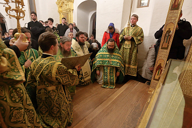 Накануне праздника в Успенском соборе Троице-Сергиевой лавры было совершено всенощное бдение.