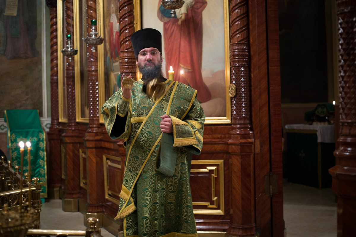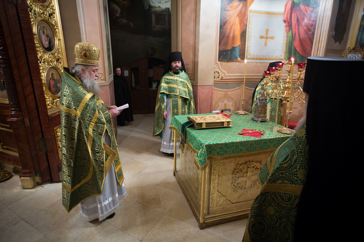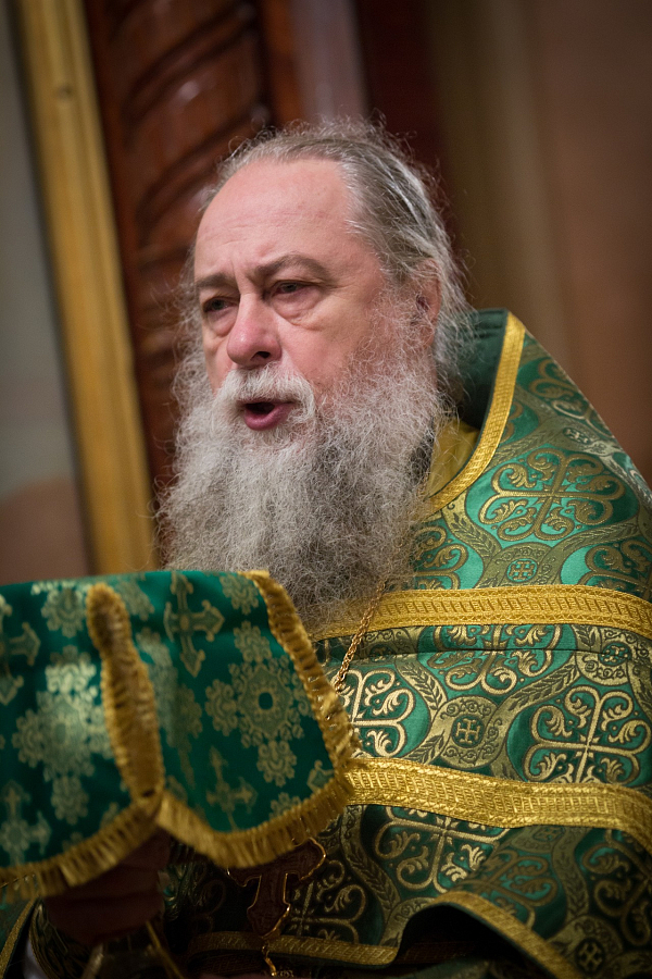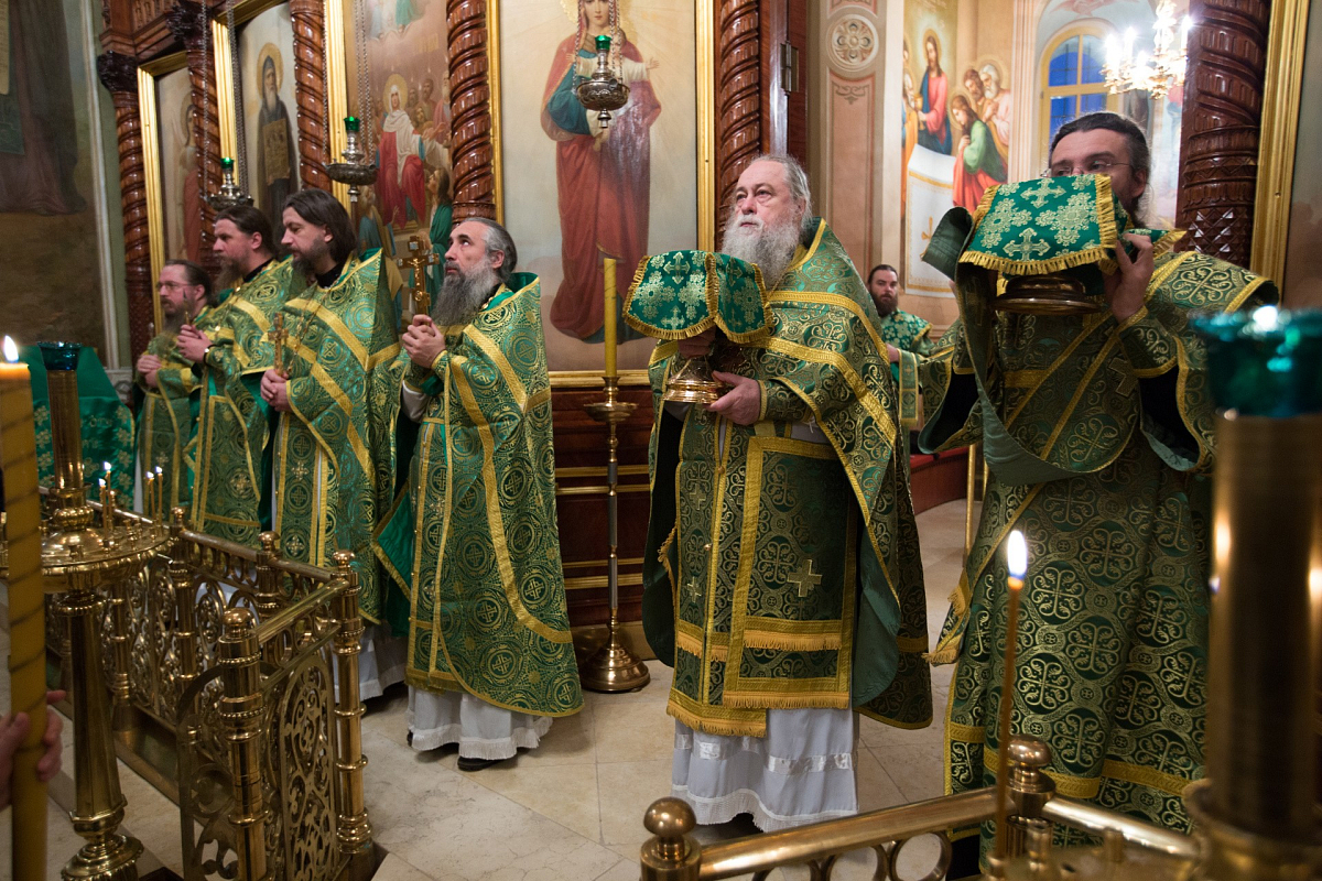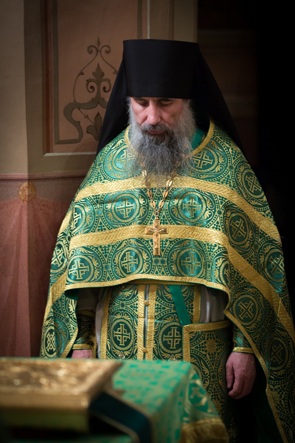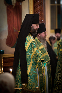 Его Высокопреподобию сослужила монастырская братия в священном сане: настоятель основанного митрополитом Платоном Спасо-Вифанского мужского монастыря иеромонах Аверкий (Лопатюк), иеромонах Агафон (Болотин) и другие.