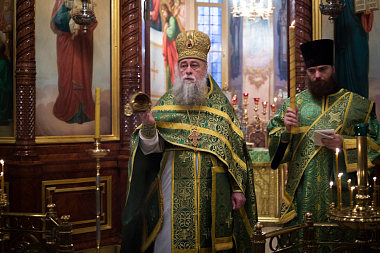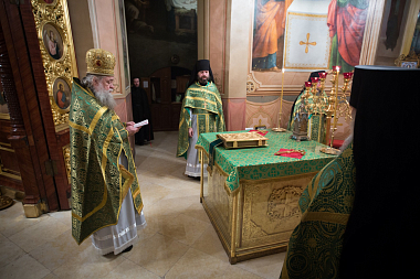 Божественную литургию в Духовском соборе обители, где находится гробница приснопоминаемого архиерея, возглавил лаврский насельник архимандрит Макарий (Веретенников).
