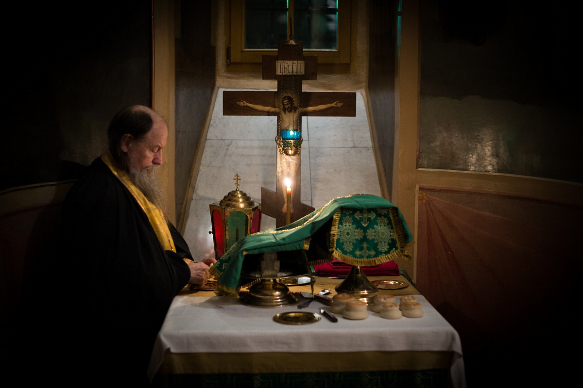 По окончании Литургии архимандрит Макарий обратился к собравшимся с проповедью: