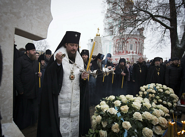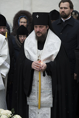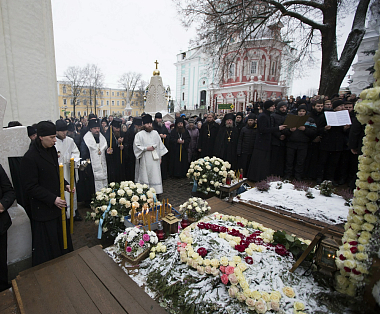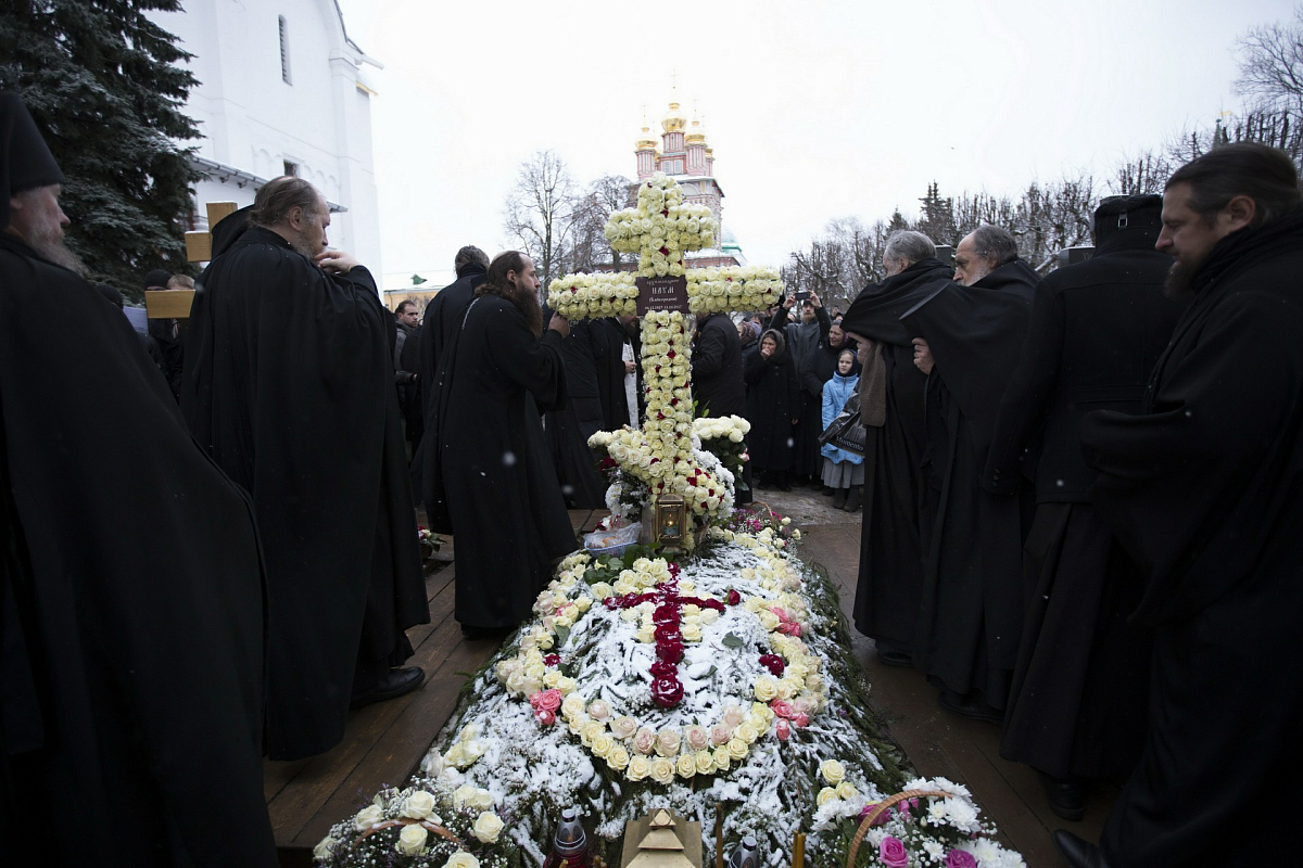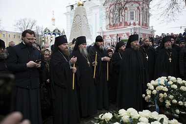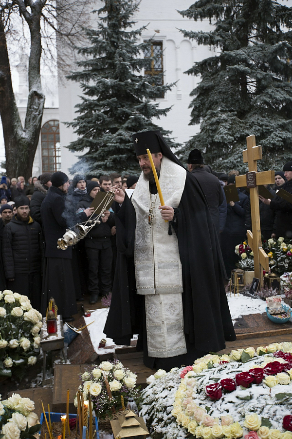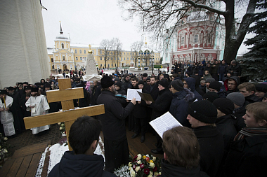По окончании богослужения архиепископ Сергий отслужил панихиду по новопреставленному архимандриту Науму у могилы усопшего за алтарем Духовского храма Лавры.