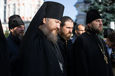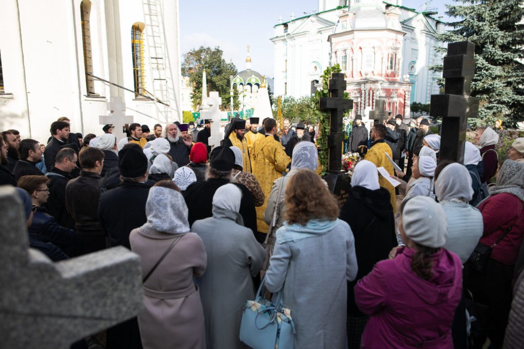 Его Преосвященству сослужила братия Троице-Сергиевой лавры в священном сане.