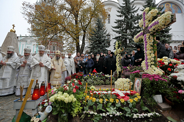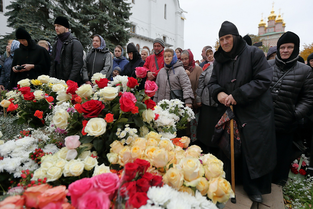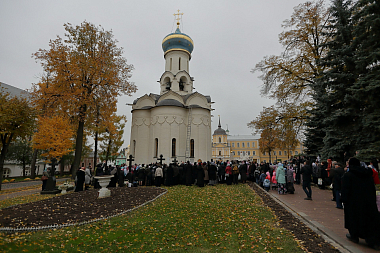 Раннюю заупокойную Литургию в Троицком соборе монастыря возглавил митрополит Астраханский и Камызякский Никон в сослужении сонма архипастырей и духовенства.