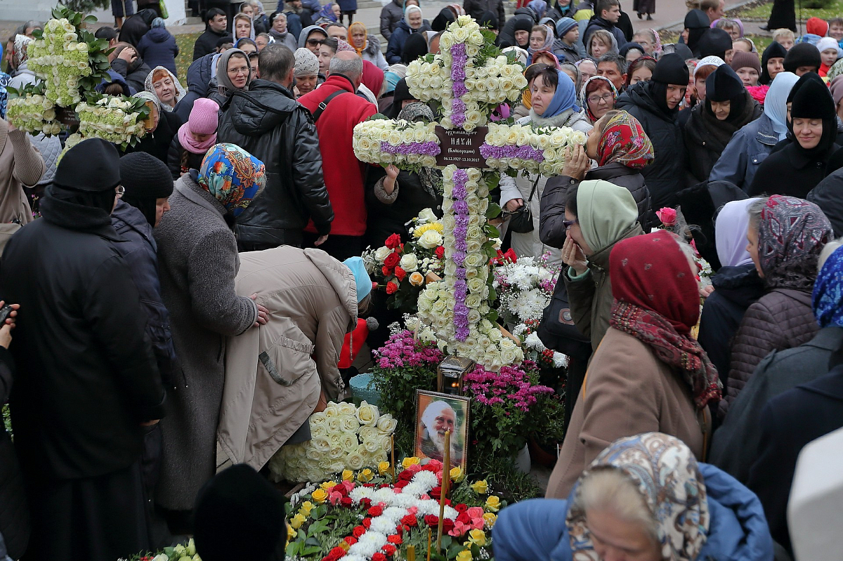 По окончании богослужения владыка Никон совершил соборную панихиду по приснопамятному архимандриту Науму у могилы усопшего за алтарем Духовского храма Лавры.