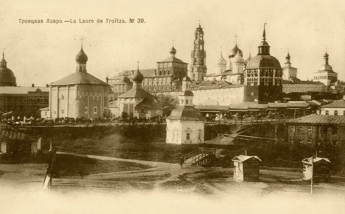 Когда в XVIII–XIX вв. стали повсеместно применять металлические кровли, это сделало возможным усложнить формы кровель в соответствии с новыми вкусами, выполнить их с криволинейными очертаниями скатов. В частности, криволинейная кровля, существующая доныне, заменила изначальную кровлю шатрового типа с плоскими скатами над храмом Прп. Сергия Радонежского с трапезной палатой, не говоря уже о большинстве других башен Лавры.