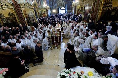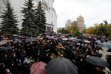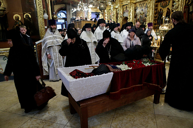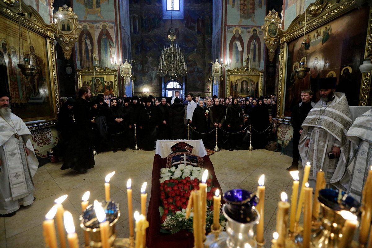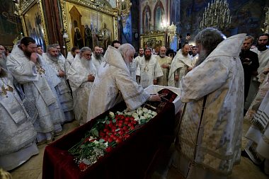 По окончании Божественной литургии заупокойное богослужение в Успенском соборе обители возглавил митрополит Истринский Арсений, викарий Святейшего Патриарха.