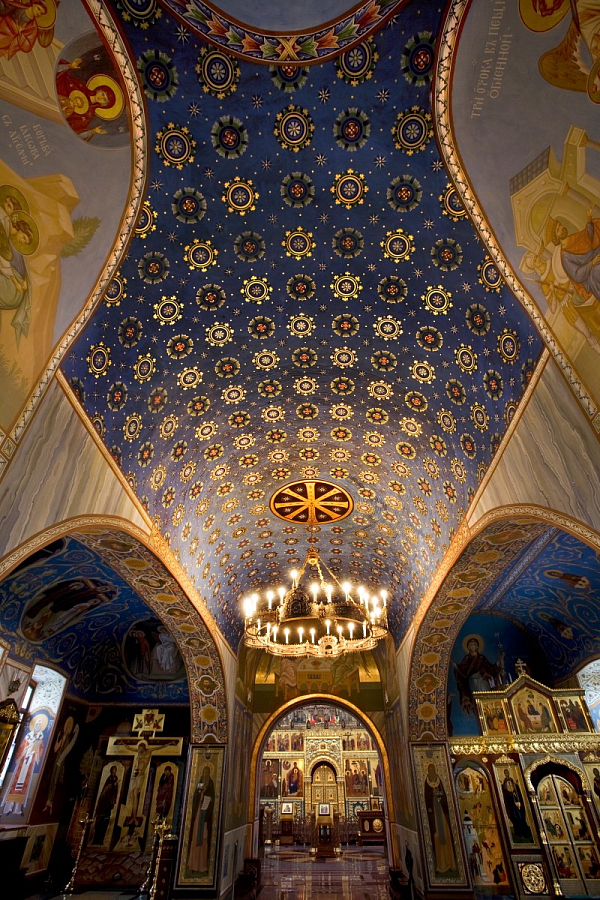 Ранее иконописцами мастерской «Киноварь» были расписаны алтарная и трапезная части храма, росписи которых выполнены в византийском стиле и отчасти копируют византийские мозаики V века мавзолея Галлы Плацидии (г. Равенна, Италия). Росписи четверика и купола Троицкого храма обители также планируется продолжить в стиле византийского искусства.