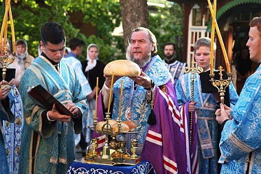 Затем состоялся традиционный крестный ход с чудотворным образом Успения Пресвятой Богородицы на Святой источник. По возращении с крестного хода паломникам в монастыре была предложена праздничная трапеза.