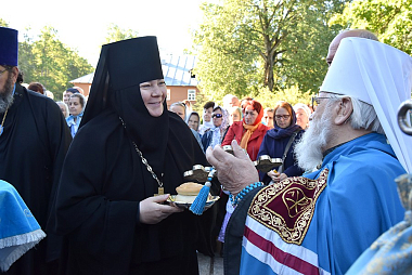 По окончании богослужения архиепископ Верейский Евгений огласил поздравление Патриарха Московского и всея Руси Кирилла по случаю престольного праздника обители и вручил настоятельнице обители игумении Филарете (Калачевой), духовенству и благодетелям монастыря церковные награды.