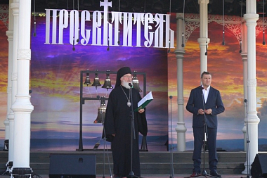 Затем игумен Валаамского монастыря епископ Троицкий Панкратий, открывая мероприятие, объявил, что главное место в четвертом сезоне Международного Валаамского фестиваля занимает тема «Подвиг новомучеников и исповедников Церкви Русской».
