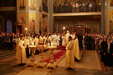 По окончании праздничной Божественной литургии игумен Валаамской обители епископ Троицкий Панкратий обратился к собравшимся с архипастырским словом: