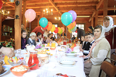 Усилиями игумении Екатерины, сестер и родителей для детей был накрыт праздничный стол.