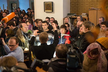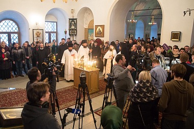 На панихиду по новопреставленному Борису Буряченко в Высоко-Петровский монастырь собрались сотни людей. Среди них – родные и близкие, его девушка, друзья, однокурсники и коллеги. Песнопения панихиды исполнил хор более чем из 30 певцов под управлением регента Высоко-Петровского монастыря Алексея Любимого.