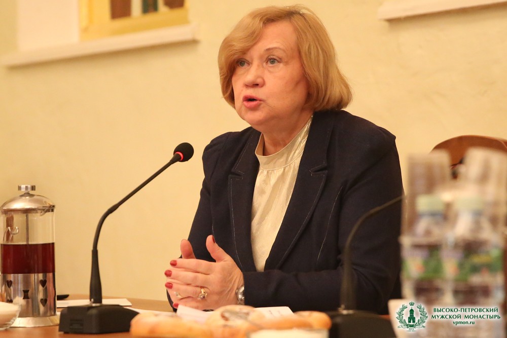 С вступительным словом выступила М.Н. Белогубова, советник полномочного представителя Президента Российской Федерации в Центральном федеральном округе А.Д. Беглова, член бюро Всемирного русского народного собора.