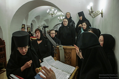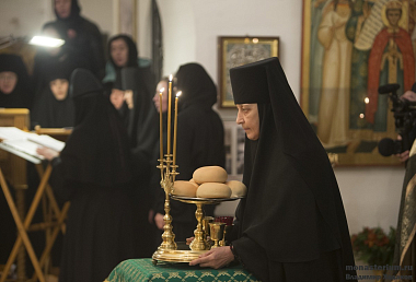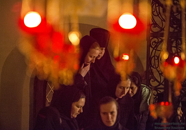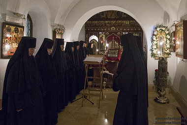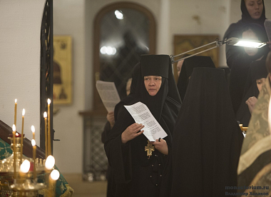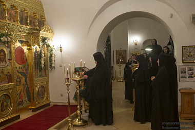 Накануне всенощное бдение с литией совершалось в приделе Преподобных Иулиании и Евпраксии монастырского собора Рождества Пресвятой Богородицы.