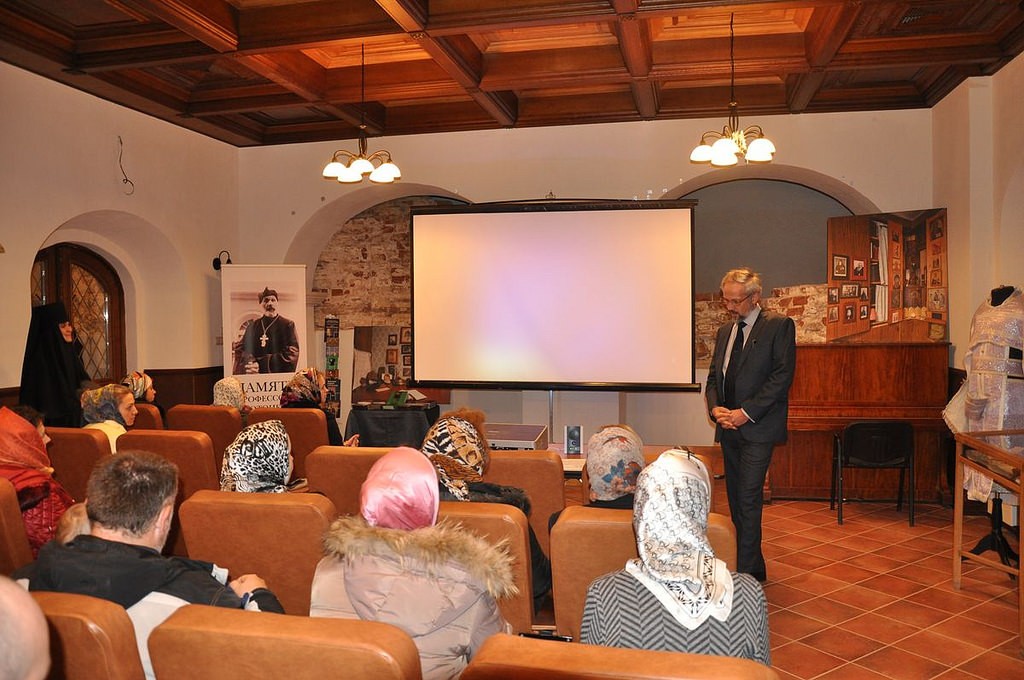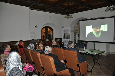 По окончании богослужения в лектории подземной части монастырского собора были проведены беседа и просмотр фильма «Коридор № 6», посвященного тюремному служению отца Глеба.