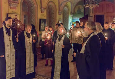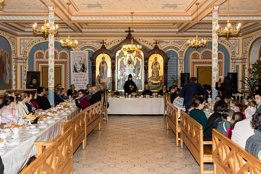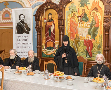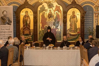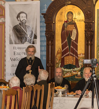 Вечер начался служением заупокойной литии по приснопамятному протоиерею Евгению в Зачатьевском приделе монастырского собора; затем все гости разместились в просторной трапезной за монастырским угощением и поделились воспоминаниями об отце Евгении.