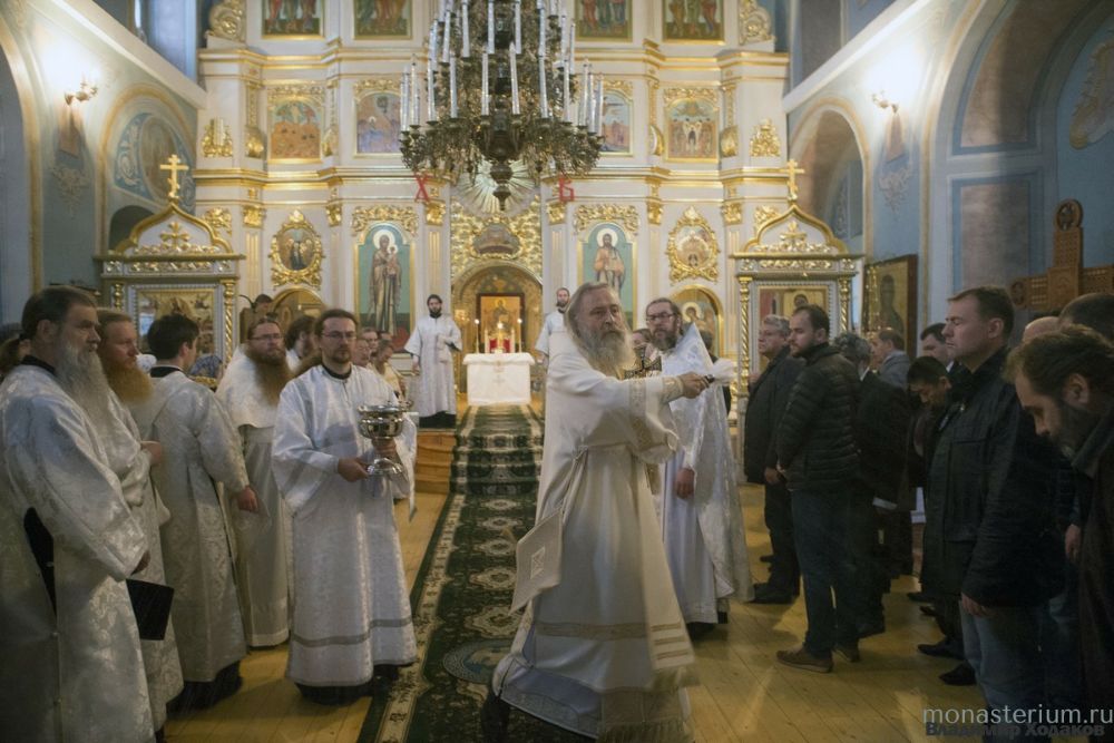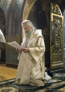 Его Высокопреосвященству сослужили исполняющий обязанности наместника обители иеромонах Даниил (Константинов), заместитель председателя Синодального отдела по монастырям и монашеству архимандрит Стефан (Тараканов), насельники монастыря в священном сане.