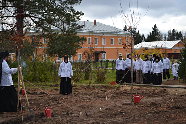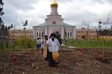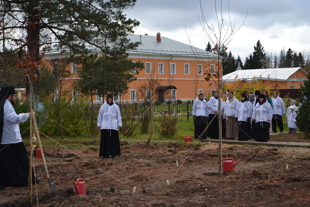 Ранее специалистами Федерального агентства лесного хозяйства был разработан план озеленения территории монастыря, составленный с учетом климатических особенностей, состава почвы и требований ландшафтного дизайна. Дендрологами было принято решение о высадке на территории обители саженцев горной сосны, плакучей ивы и канадского клена. Всего к высадке предназначалось более восьмидесяти деревьев.