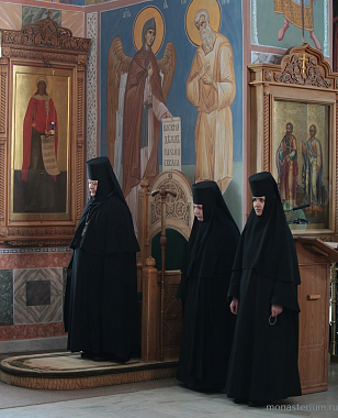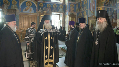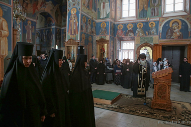 За богослужением молились председатель Синодального отдела по монастырям и монашеству, наместник Троице-Сергиевой лавры архиепископ Сергиево-Посадский Феогност, настоятельница Покровского монастыря игумения Олимпиада (Баранова), насельницы обители и воспитанницы монастырского приюта.