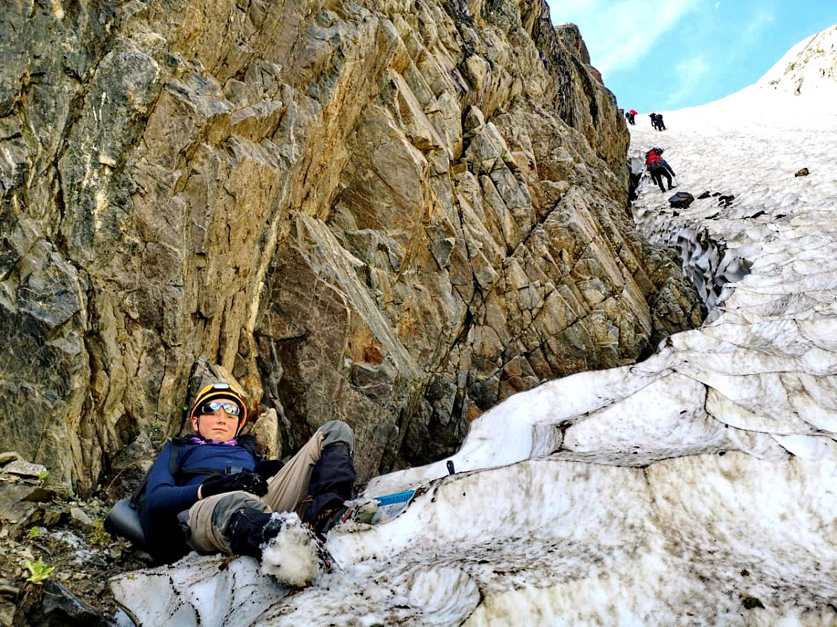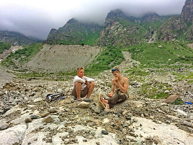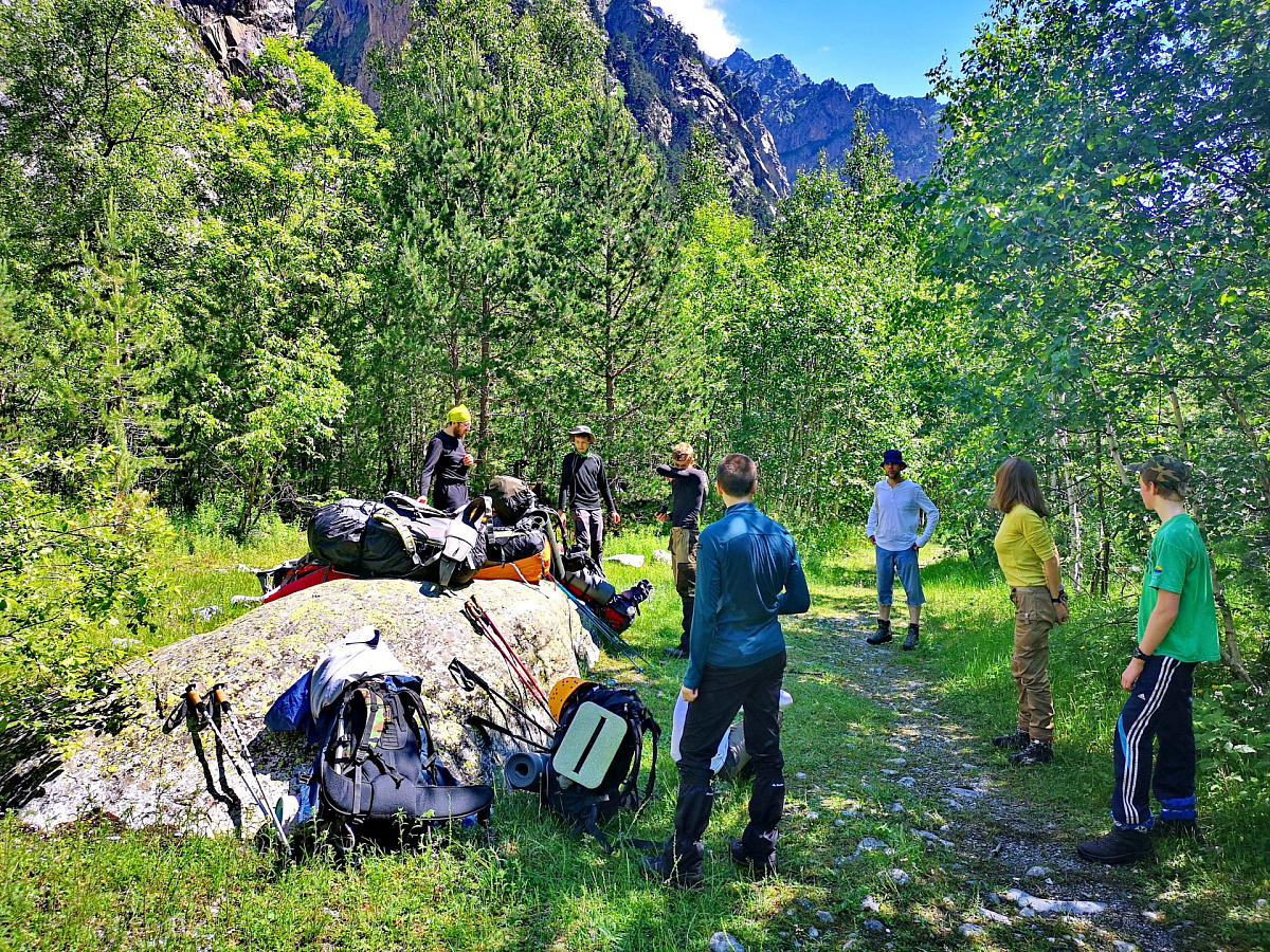 Намеченные ранее планы пришлось менять. Хотели провести тренировку на нижней ступени ледопада Цейского ледника, но, подойдя к заваленным глыбами местам предполагаемых занятий, от идеи отказались. Намечали подняться на знаковую гору – пик Николаева, – но, увидев, в каком состоянии маршрут, решили отклонить и этот вариант. В данной ситуации «на помощь» пришел «обкатанный» пик Черевиченко. Хотя и этот маршрут, уже пройденный и знакомый, преподнес свои небольшие сюрпризы: тропа, которая вела к началу подъема, проложенная между каменных склонов, во многих местах стала труднопроходимой. Участки дороги, проложенные в свое время по плоскогорью, заросли травой по пояс, двигаться вверх с тяжелыми рюкзаками за спиной было сложно даже взрослым участникам экспедиции. Однако тяготы и лишения лишь подтвердили хорошую готовность группы, сплоченность коллектива, а также морально-волевую устойчивость ребят, их умение быстро перестраиваться в новых условиях. Предлагерная подготовка, которая велась в течение всего учебного периода, стала надежной основой для занятий в горах.
