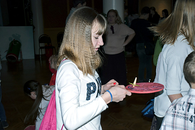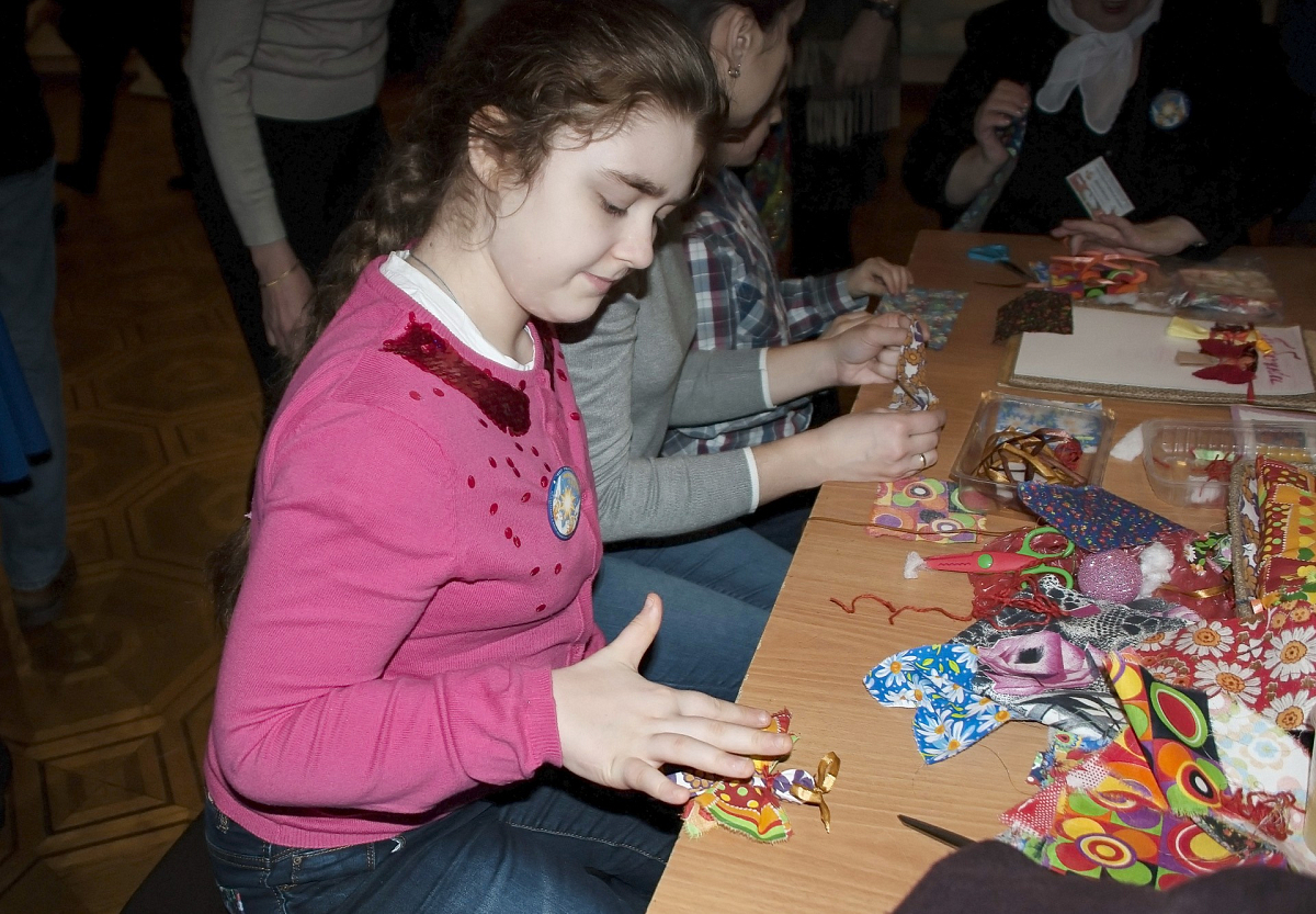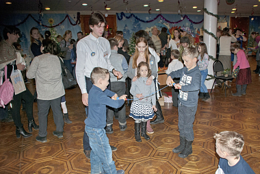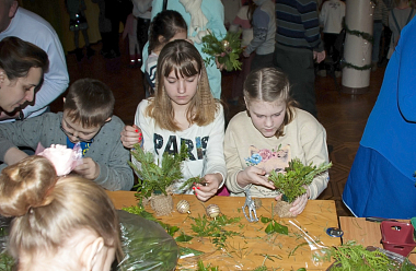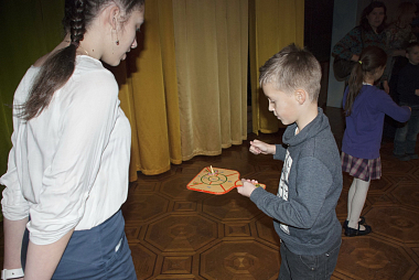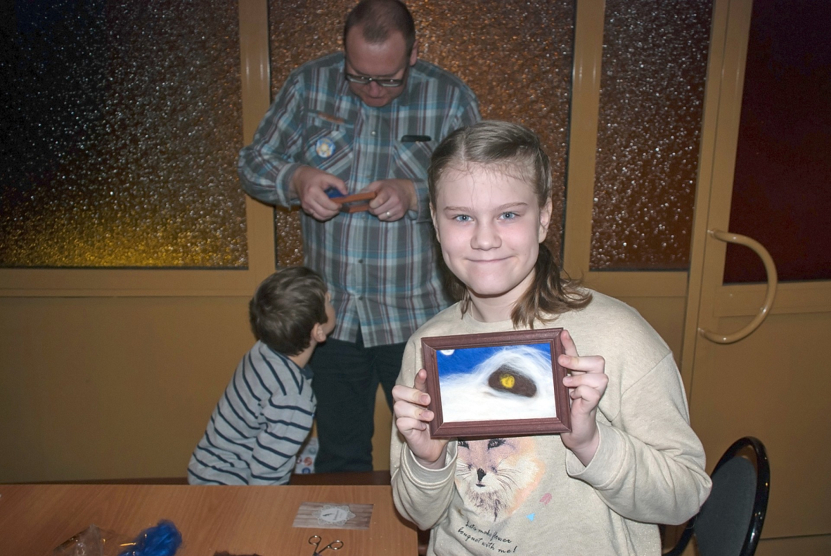 Для участников и гостей рождественского праздника в фойе Творческого центра были организованы различные мероприятия. Дети с удовольствием водили хороводы, участвовали в подвижных играх, получая не только море позитивных эмоций, но и заслуженные призы. Сладкое угощение: пряники, торты, печенье и газировка, расставленные тут же, в фойе, на столах, – стало для ребят источником дополнительной радости. Предложенные мастер-классы по изготовлению картин из шерсти, тряпичных кукол, икебаны на рождественскую тему открыли простор для детского творчества.
