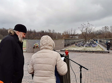 Затем группа угрешских паломников посетила мемориальный комплекс и приняла участие в акции «Голос памяти». В течение всего дня участники акции по очереди зачитывали имена всех пострадавших на полигоне людей.