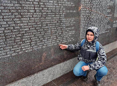 Проходя мимо плит с надписью имен и фамилий расстрелянных, ученик воскресной школы Донского храма Ярослав Смирнов нашел имя своего прапрадедушки Ивана Аникеевича Матюхина 1886 года рождения, который был расстрелян 21 сентября 1937 года на Бутовском полигоне.
