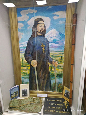 В музее монастыря игумен Владимир рассказал ребятам о трагичных событиях, которые разворачивались в стенах обители в ХХ веке. Особенно поразил слушателей жизненный путь схииеродиакона Антония (Семенова). Этот человек 23 апреля 1994 года, на 6-й седмице Великого поста, принял схиму с именем Антоний. Потерявший зрение в ГУЛАГе, он с Божией помощью чудом остался в живых и странствовал по России почти всю жизнь. Бог наградил старца даром прозорливости. Многие его предсказания сбывались, по его молитвам люди обретали исцеление. 19 декабря 1994 года старец отошел ко Господу и по его последней воле был похоронен с северной стороны храма великомученицы Екатерины. Посетив могилу схииеродиакона Антония, угрешские паломники отправились в обратный путь.