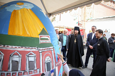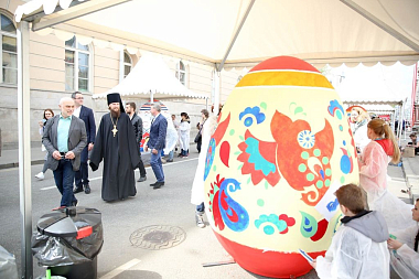 С утра праздничную площадку посетил А.В. Кибовский, министр Правительства Москвы, руководитель Департамента культуры города Москвы. Александр Владимирович высоко оценил подготовку фестиваля и пообщался с участниками конкурса росписи пасхальных яиц, которые уже приступили к работе.
