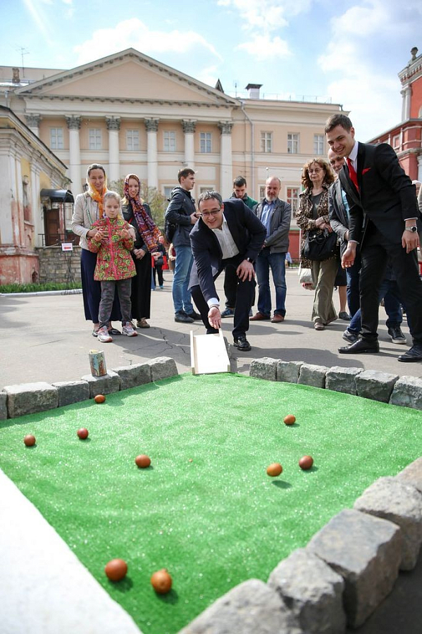 Паломническая служба Высоко-Петровского монастыря организовала для всех желающий гостей праздника экскурсии по Высоко-Петровскому монастыря и Белому городу, а Молодежный клуб «Петровцы» реконструировал древнюю пасхальную русскую забаву – катание яиц.