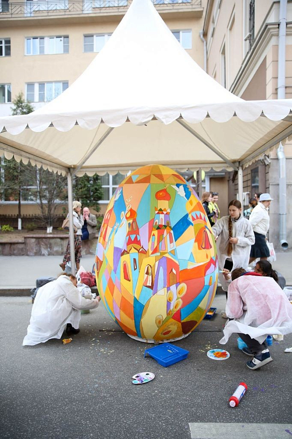 Расписанные двухметровые Пасхальные яйца будут находиться на территории Высоко-Петровского монастыря ближайшие две недели. Обитель открыта для посещения с 08.00 до 20.00.