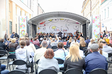 Завершением программы праздничного дня на Петровке стал концерт струнного оркестра Академического музыкального училища при Московской Государственной консерватории им. П.И. Чайковского под управлением художественного руководителя и дирижера А.Л. Хургина.