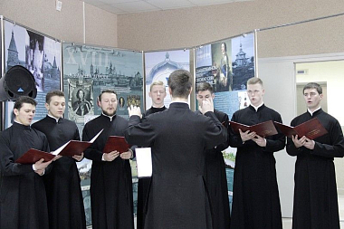 Затем перед собравшимися с песнопениями выступил хор Смоленской Православной Духовной семинарии.