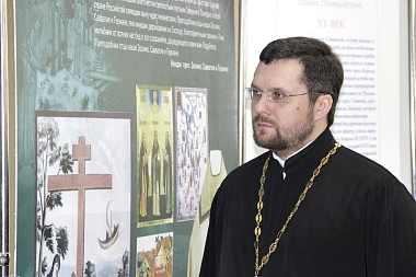 Архимандрит Ианнуарий (Недачин), обращаясь к собравшимся, рассказал об истории создания выставки, о монастыре, о его значимости для истории нашей страны:
