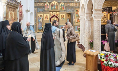 Настоятельница монастыря игумения Иулиания (Каледа) обратилась к отцу Феофану со словом, отметив, что список иконы Божией Матери «Милостивая» был написан в период с ноября 2016 года по январь 2017 года и после его торжественного освящения еще полгода находился в алтаре монастырского собора, «напитываясь благодатью» богослужений.
