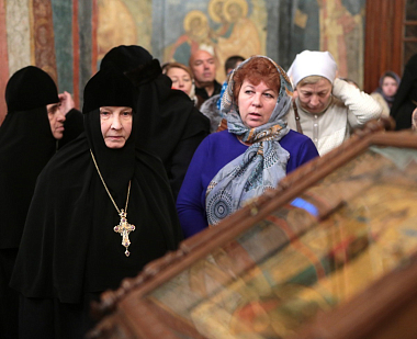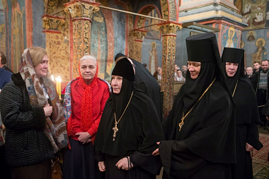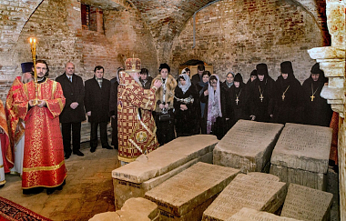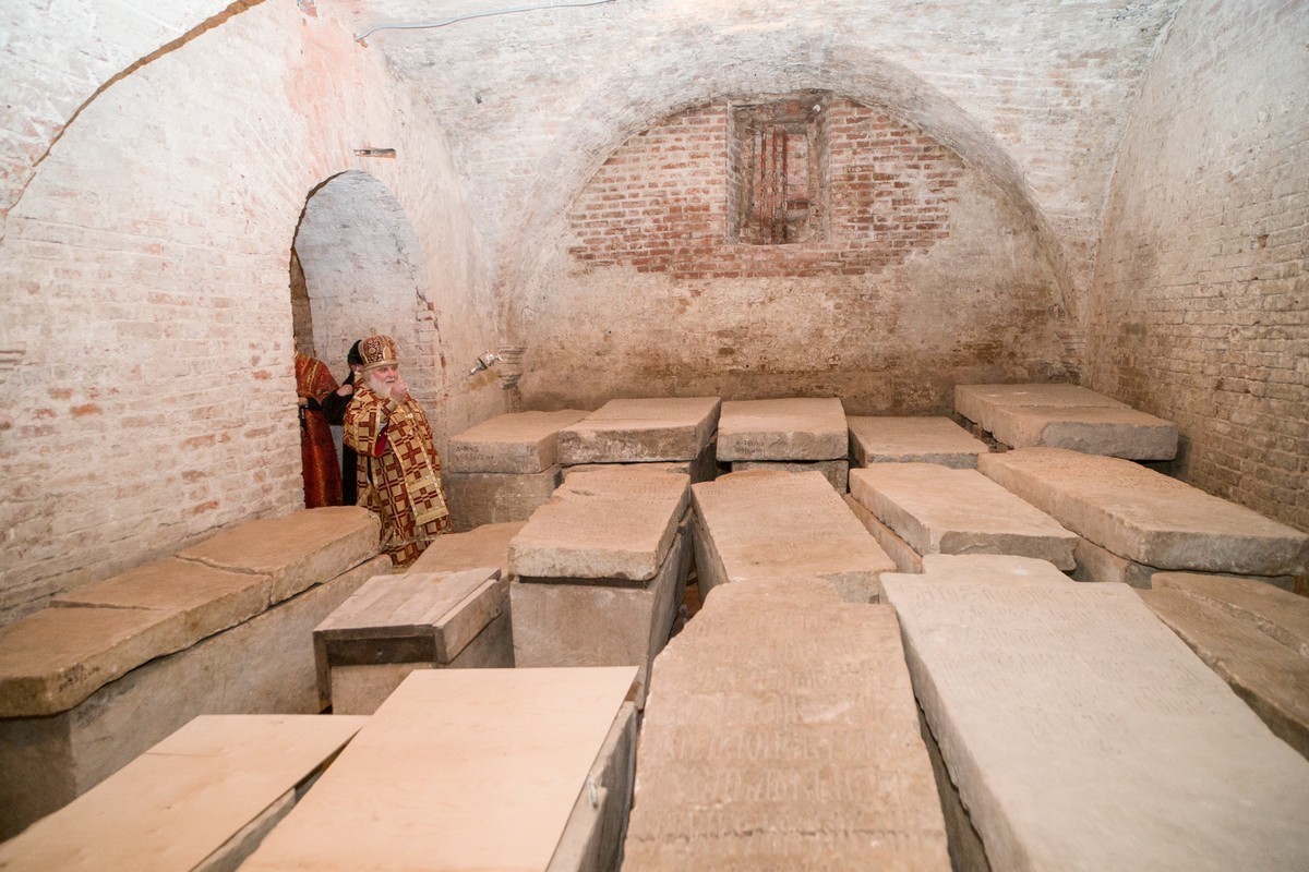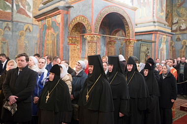 По заамвонной молитве владыка Арсений совершил заупокойную литию в крипте Судной палаты над гробницами цариц и великих княгинь. В приделе Св. мч. Уара был отслужен молебен у раки с мощами первой игумении Воскресенского женского монастыря прп. Ефросинии, вел. кн. Московской.