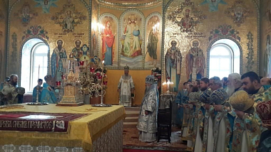 Его Блаженству сослужили архиепископ Владимир-Волынский и Ковельский Владимир, духовенство обители.