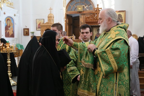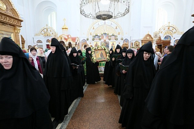 В сам день праздника в обители отслужили четыре Божественные литургии: раннюю в Кресто-Воздвиженском соборе, вторую в Спасо-Преображенском храме, третью в Свято-Евфросиниевском храме.