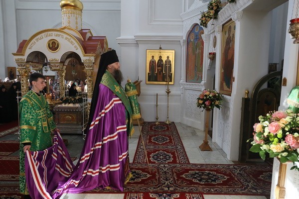 После богослужения Преосвященный Порфирий в своей проповеди поздравил всех присутствующих с праздником и обратил их внимание на то, что преподобная Евфросиния красотой своей души, своей любовью к Богу, своим внутренним миром повлияла на жизнь целого народа, целой страны, и сегодня всем она являет свою скорую помощь и предстательство.