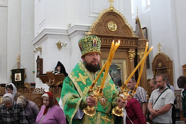Евфросиниевские торжества в этот день продолжила в Кресто-Воздвиженском соборе Божественная литургия, которую возглавил епископ Лидский и Сморгонский Порфирий, Председатель Синодального отдела по делам монастырей и монашеству Белорусского Экзархата.